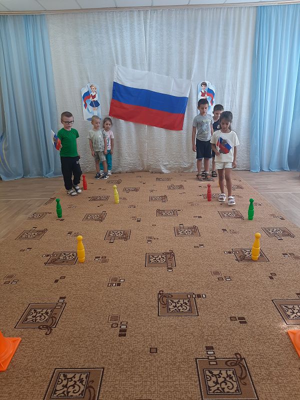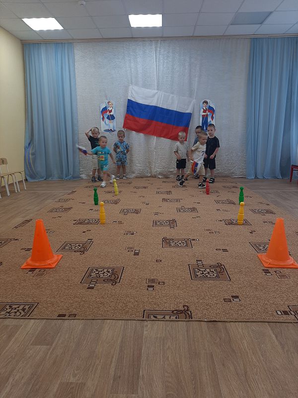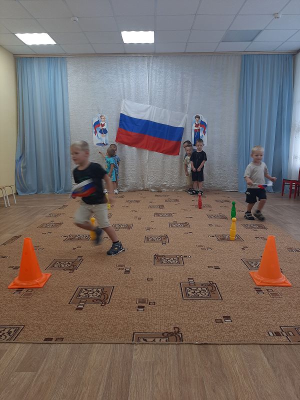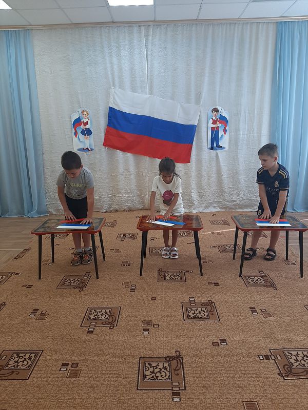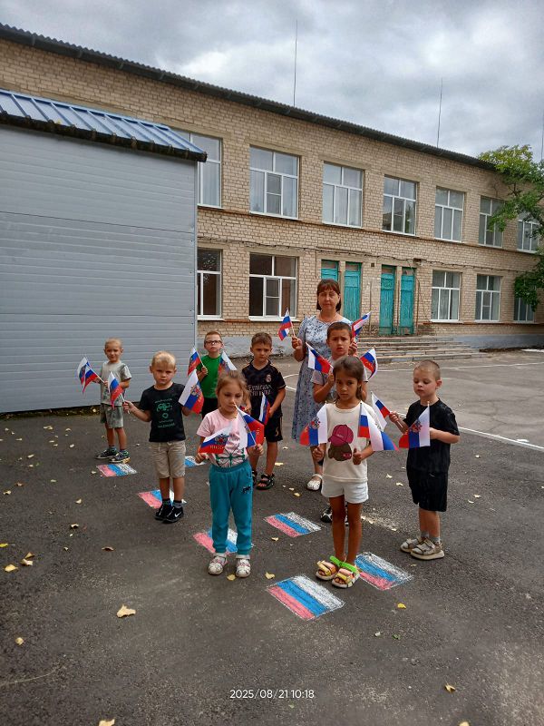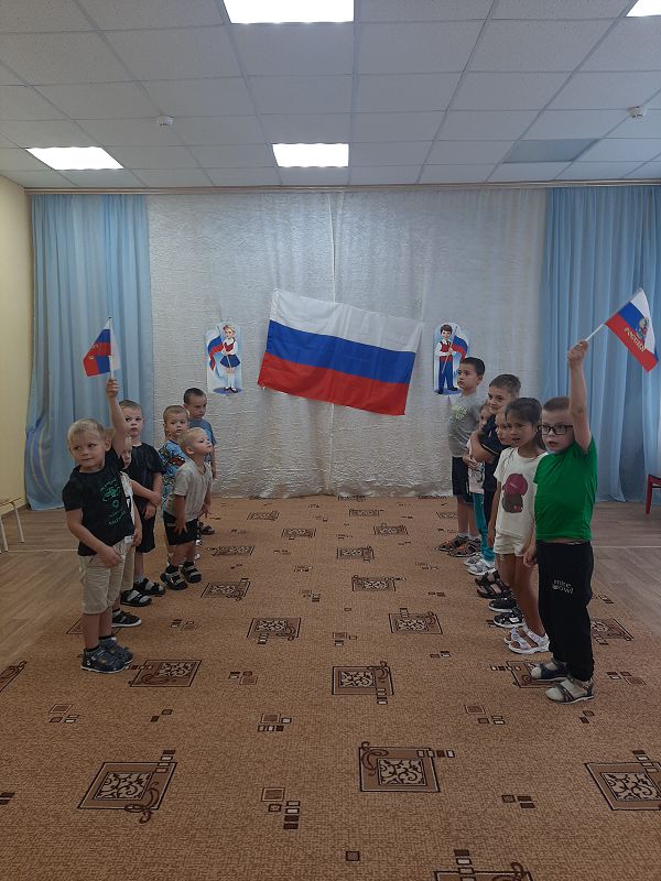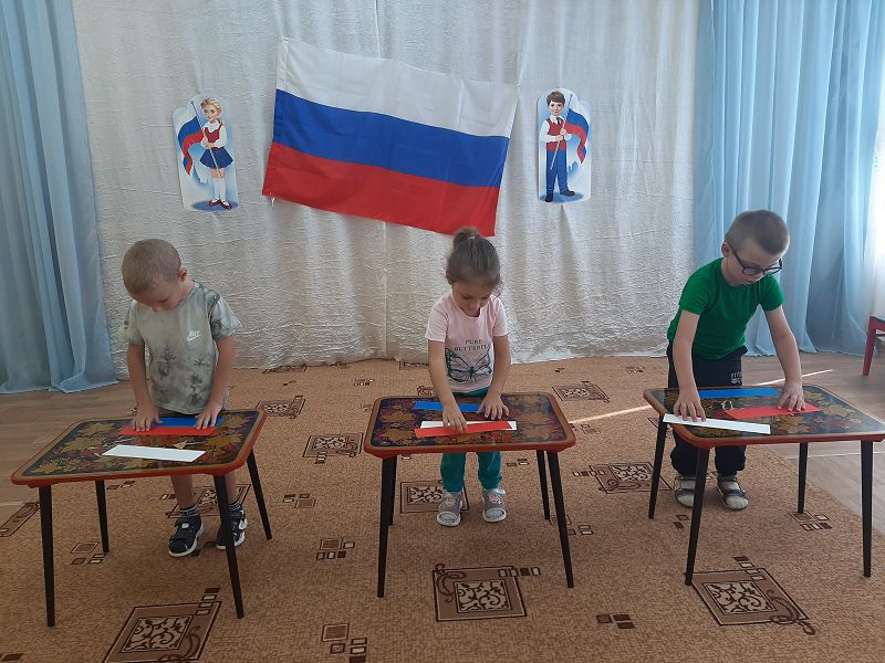 Ежегодно 22 августа в России отмечается День Государственного флага Российской Федерации. В этот день в дошкольных группах прошёл познавательный час «День флага», на котором дети узнали об истории появления Российского флага и его значимости для нашего государства, участвовали во флешмобе, играли в игры «Передай флажок», «Собери флаг по цвету». Дети с энтузиазмом взялись за мелки, и нарисовали на асфальте триколор.
