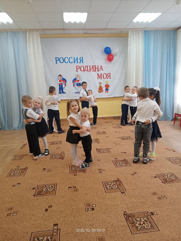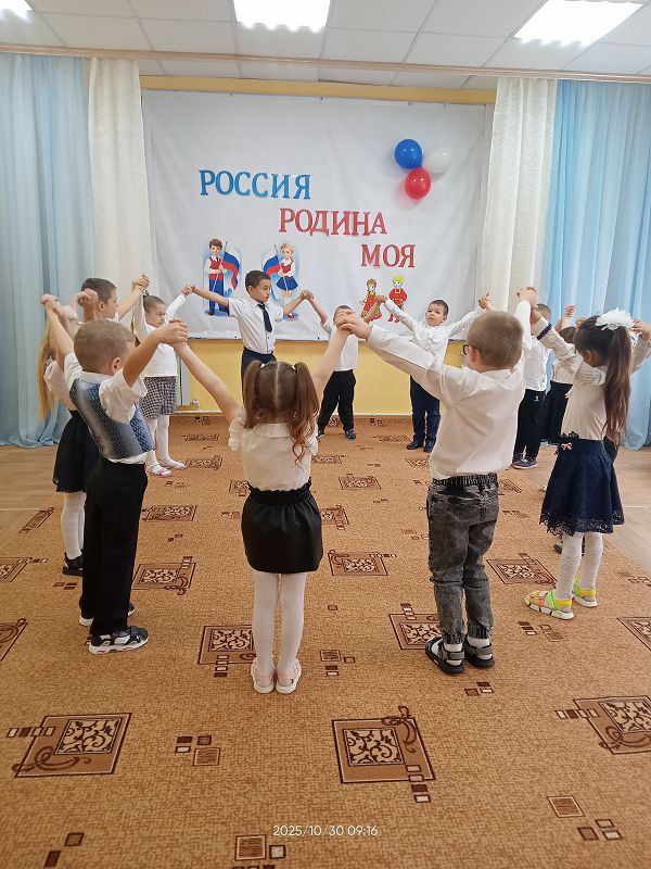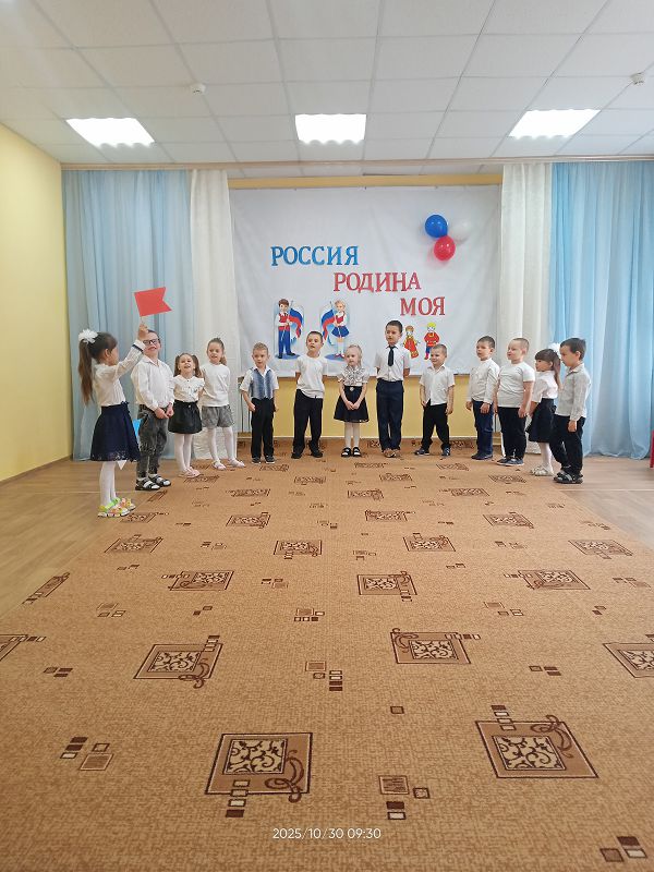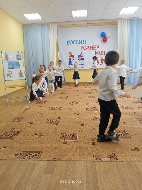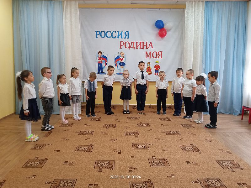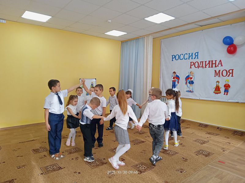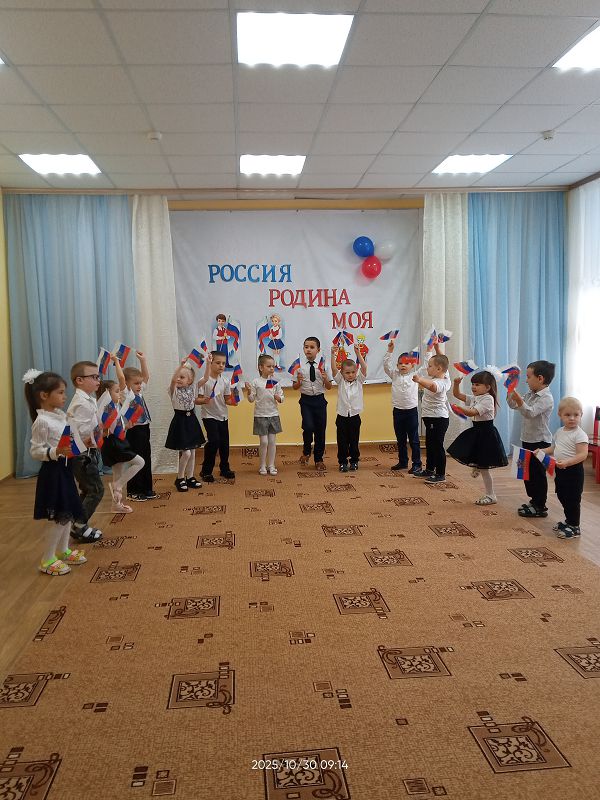 30 октября в дошкольных группах состоялось тематическое развлечение «Россия – Родина моя». Дети познакомились с историей возникновения праздника, совершили путешествие на самолете по самой большой стране в мире – России. Побывали в гостях у народов севера, кавказского и русского народов. Играли в народные игры, пели песни, читали стихи, закрепили знания о государственных символах. Дошкольники запомнили, что сила России в сплочённости и дружбе людей разных национальностей, и что все они одинаково любят свою Родину.