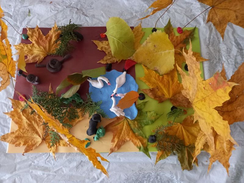 30.10.2025 года наши первоклассники побывали в творческой мастерской волшебницы Осени, вместе с классным руководителем Богомоловой Е.Н. создали композицию "Озеро в осеннем лесу".