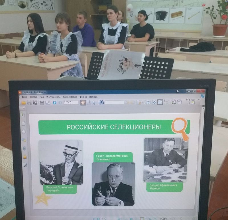 Наши ребята говорили о роли и значении селекции и генетики в развитии общества, о перспективности данного направления в качестве будущей профессии, познакомились с деятельностью И. В. Мичурина, его вкладом в отечественную и мировую науку и практику.
