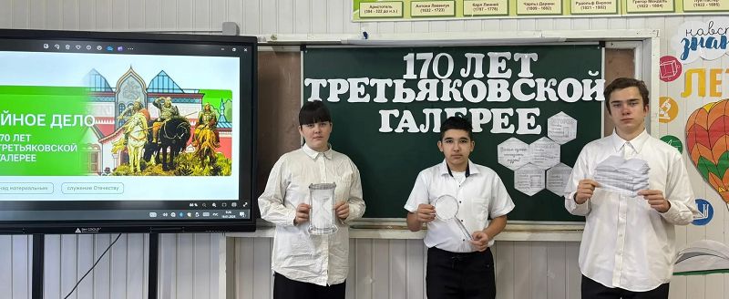 После линейки в школе прошли уроки "Разговоры о важном" на тему «Музейное дело. 170 лет Третьяковской галерее».