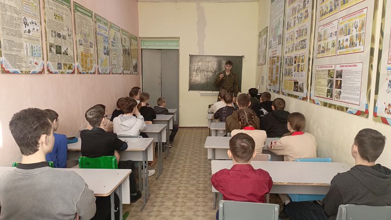 Началась "Школа юнармейца" с приветствия начальника штаба ВВПОД «Юнармия» Тацинского района Воловликова Владимира Владимировича. Мероприятие направлено на военно-патриотическое воспитание молодежи.
