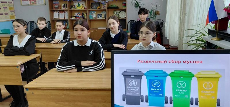 В ходе занятия школьники узнали, что количество мусора на планете растет с каждым годом. В нашей стране, к сожалению, в основном мусор либо сжигают, либо просто складируют на свалках, но оба эти способа наносят урон экологии регионов. При этом уже давно существуют технологии раздельного сбора, которые позволяют перерабатывать 100% мусора.