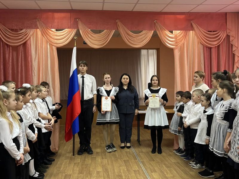 Утро понедельника 16 февраля 2026 года в школе традиционно началось с торжественной линейки, церемонии выноса флага и исполнения гимна Российской Федерации.