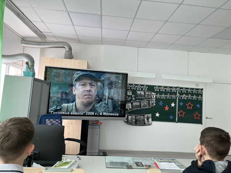Ребята вспомнили о выпускниках нашей школы и жителях Михайловского поселения , которые сейчас находятся в зоне СВО, участниках афганской и чеченской военных кампаний. Почтили память тех, кто отдал свои жизни на мирную жизнь своей страны. А еще ребята посмотрели видеоролик с фрагментами из кинофильмов, в которых говорится о защитниках нашей любимой Родины.