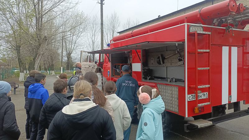 Сегодня командир отделения ОП №2 ПСЧ 66 Тацинского района Камагуров Сергей Викторович провёл для учеников 5 класса открытое занятие "Культура безопасности".