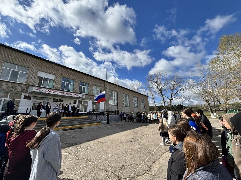 Утро понедельника 27 апреля 2026 года в школе традиционно началось с торжественной линейки, церемонии поднятия флага, исполнения гимна Российской Федерации и награждения учащихся.
