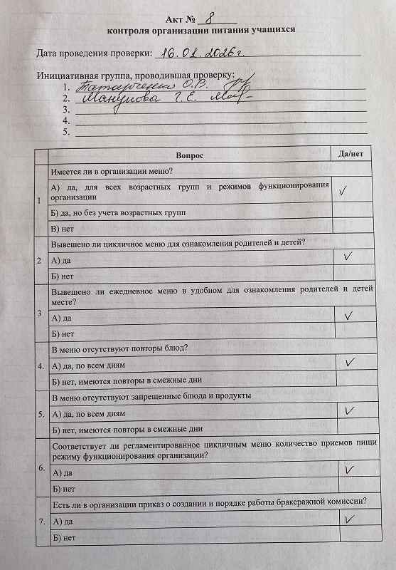 16 октября 2024 года. В нашей школе вновь осуществляется родительский контроль за организацией горячего питания и обеспечением качеством питания обучающихся.