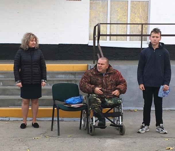 На линейке присутствовал председатель Тацинской районной организации «Союз ветеранов Афганистана», тренер-преподаватель ДЮСШ Мартынов С.П. Он вручил тельняшки за юбилейные 15-е разведвыходы Калдузову Ярославу и Дидыку Никиту; денежную премию – Зайцеву Данилу за 30-й разведвыход. Сергей Петрович отметил успешное участие Лапина Никиты и Мигаля Алексея в областных соревнованиях по рукопашному бою.