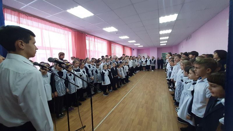 В нашей школе состоялось торжественное открытие месячника патриотической работы, под звуки торжественного марша знаменная группа открыла мероприятие.