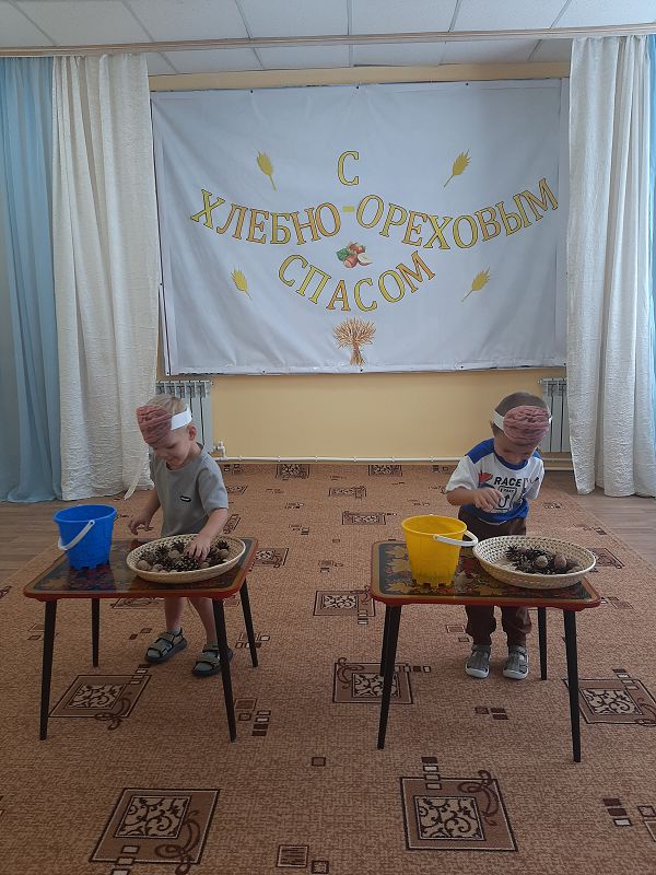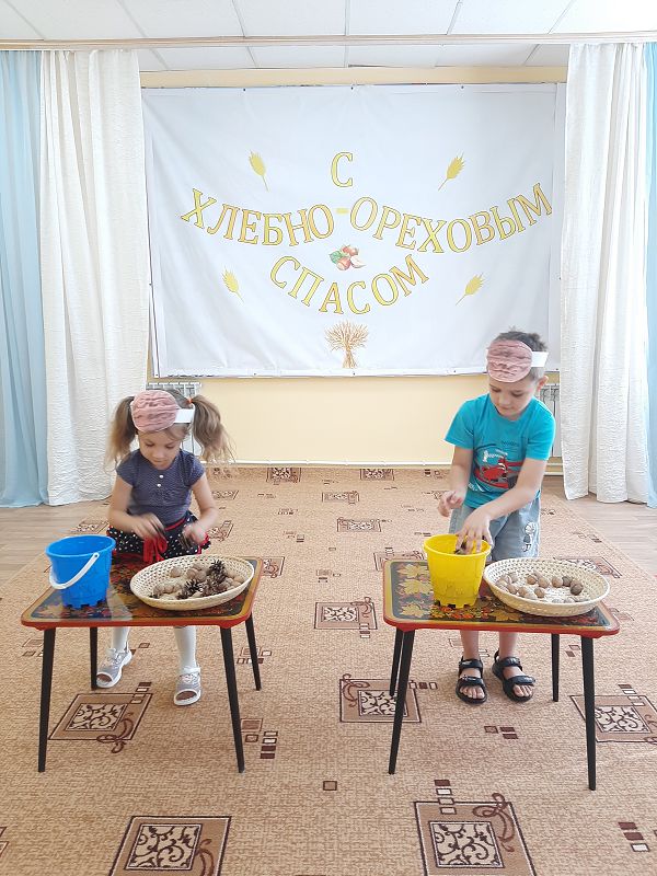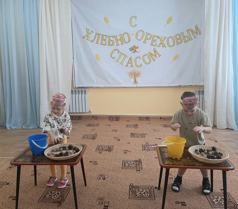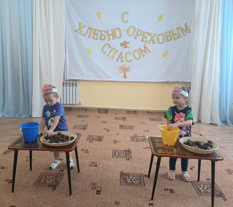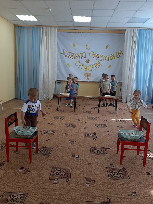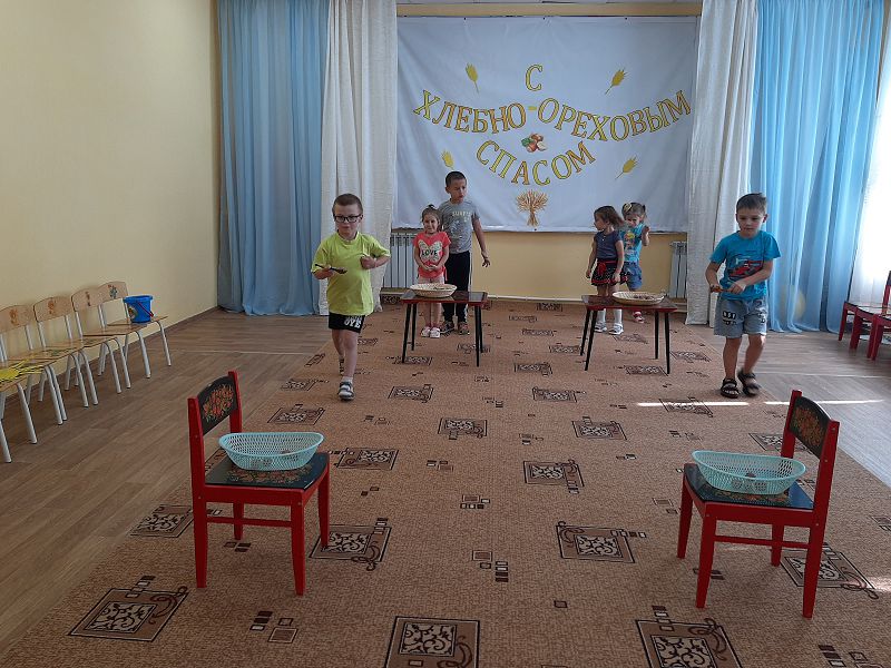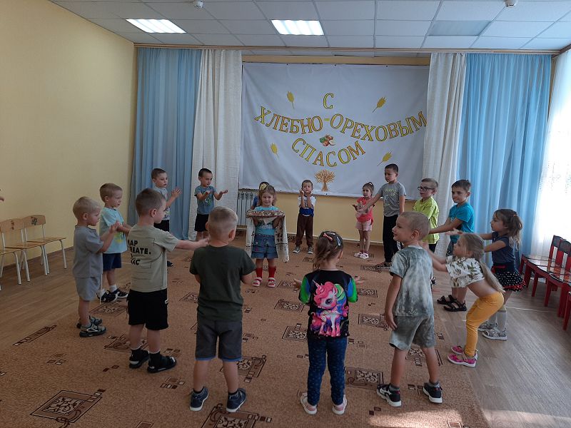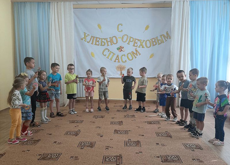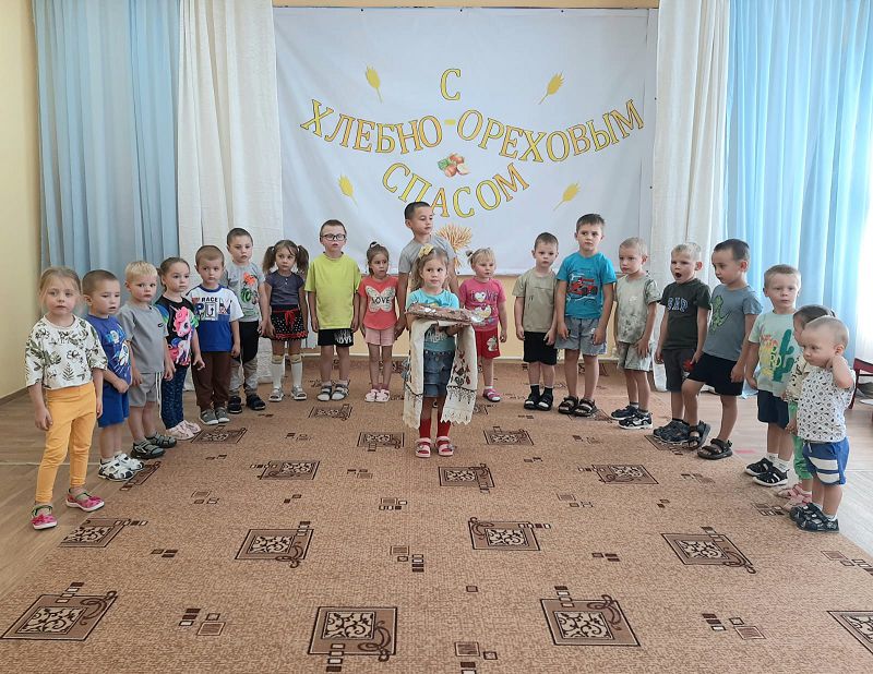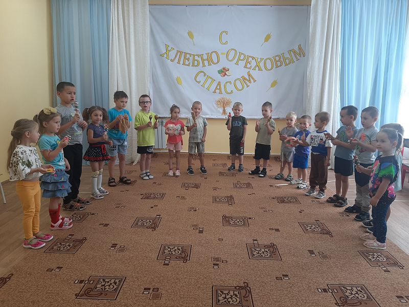 В дошкольных группах прошло тематическое развлечение "Ореховый Спас хлеб да орехи припас". Ребята узнали приметы и традиции праздника. В этот день пекли первый каравай из муки сжатой пшеницы и в конце августа созревали орехи.