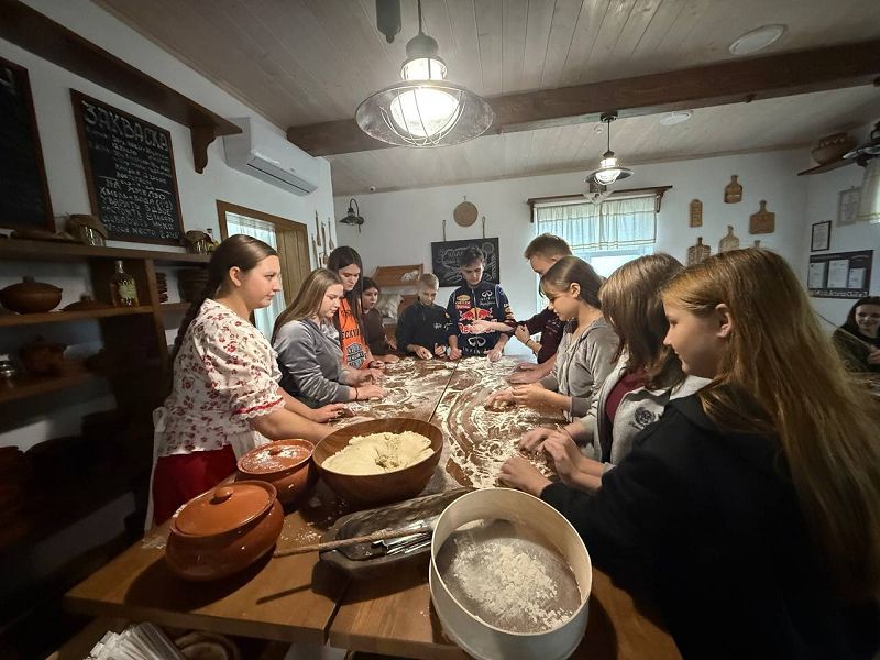После экскурсии в музее ребята приняли участие в мастер-классе по приготовлению калачей. Это был увлекательный опыт, где каждый мог попробовать себя в роли пекаря. Мы узнали секреты приготовления вкусного хлеба и, конечно же, в конце мастер-класса все смогли попробовать свои изделия — горячие и ароматные калачи!
