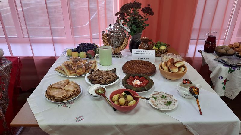 Родители приготовили самые разнообразные блюда: уху, пироги, запеканки, соленья, хворост и многие другие вкусности.