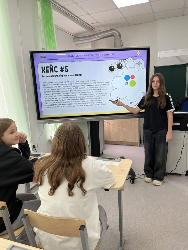 В 8 «Б» классе прошел классный час «Недетские игры. Дроп поневоле», на котором ребята познакомились с популярными способами вывода денег, разобрали ситуации, в которых мошенники пытались обманным путем получить деньги от людей.