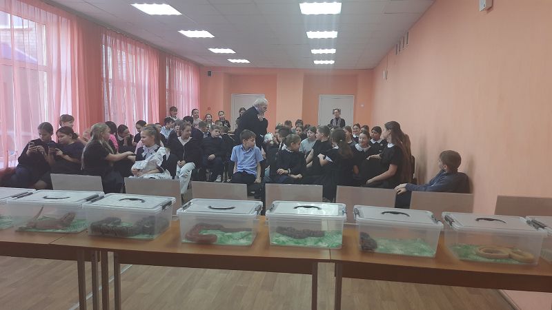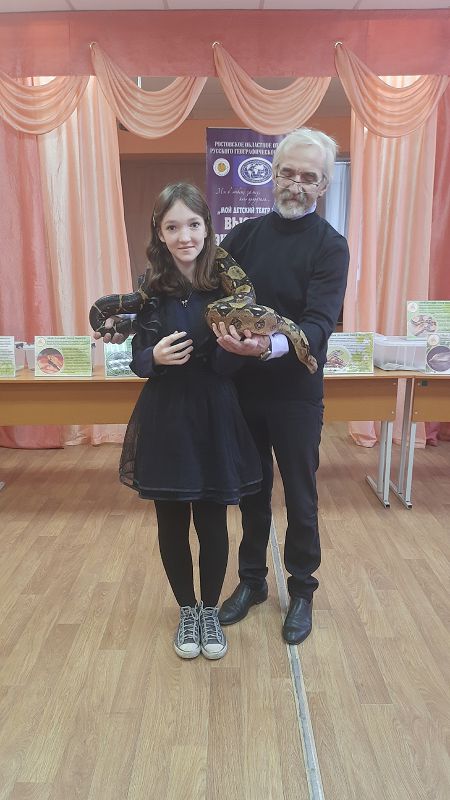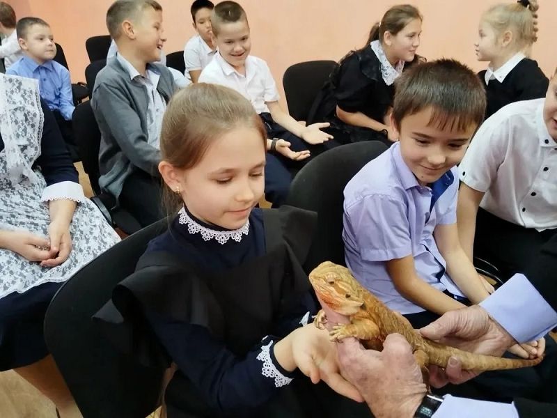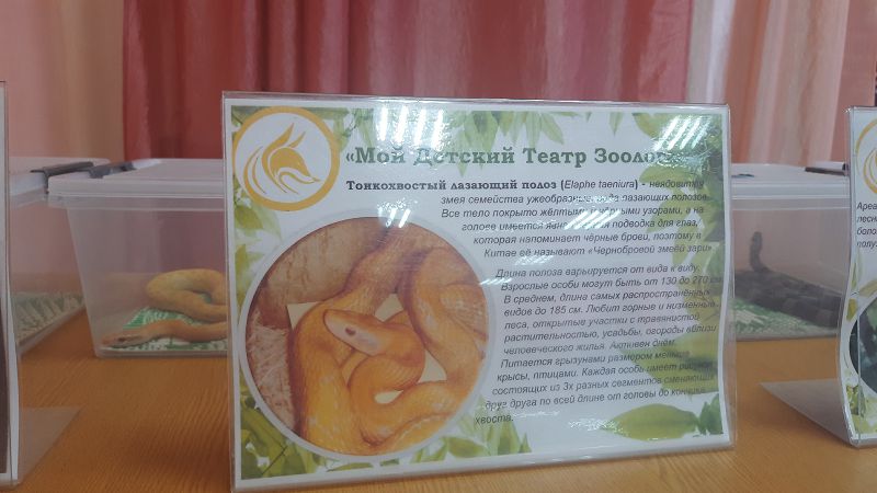 Прикоснулись к удивительному миру живой природы. Ребята познакомились с императорским удавом, домашним кроликом, пятнистый леопардовым эублефаром, бородатой агамой, тигровым питоном, маисовым полозом, синалоанской молочной змеёй, тонкохвостым полозом и др.