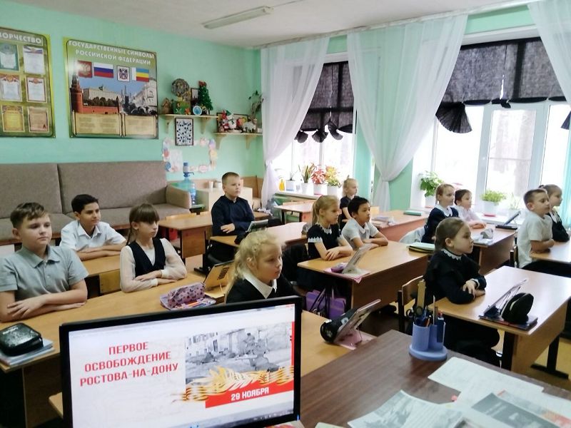 В 3 классе 26.11.2025г. состоялся классный час на тему «Подвиг ростовчан: страницы мужества и стойкости», посвященный первому освобождению Ростова-на-Дону от фашистских захватчиков. Учащиеся узнали о мужестве и самоотверженности людей, которые защищали свой город, о важных событиях и личностях, оставивших след в истории. Обсуждение стало настоящим уроком патриотизма, где каждый смог осознать значимость этих событий для нашей страны.