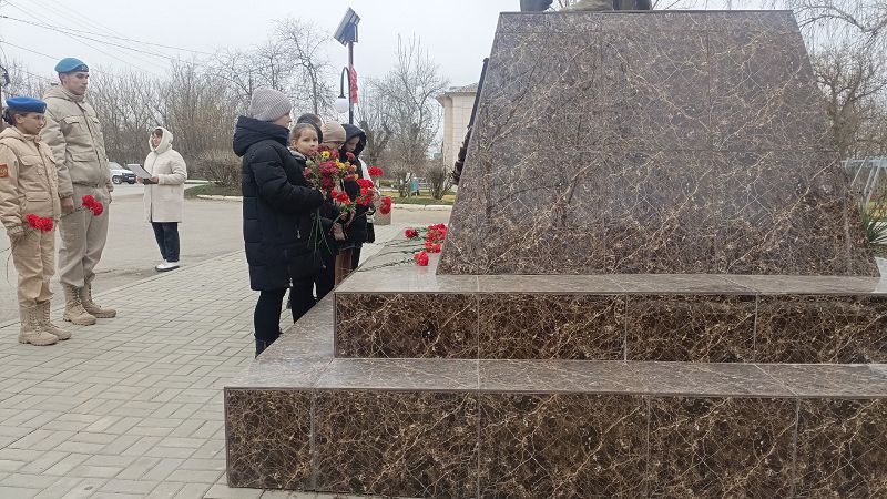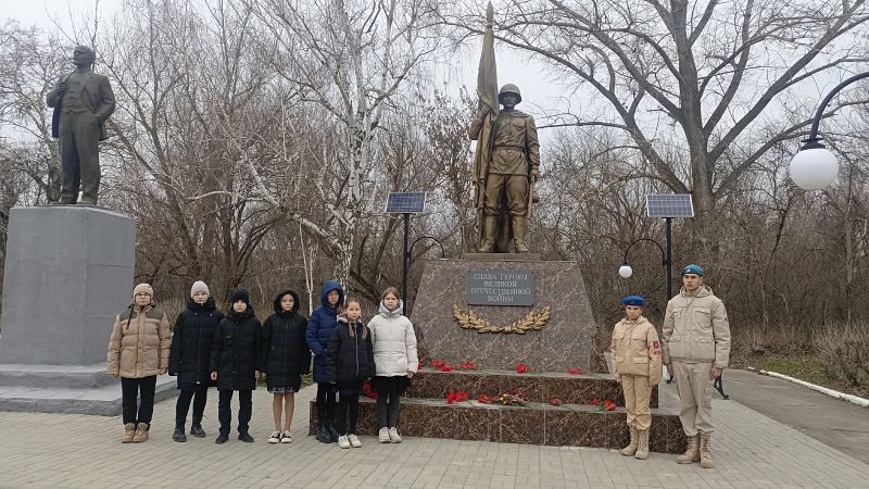 Сегодня ученики 6 «А» класса вместе с юнармейцами военно-патриотического клуба «Наследники Победы» Суркиной Алёной и Журловым Дмитрием под руководством советника директора по воспитательной работе Калимбетова Ю.А. почтили память героев, приняв участие в торжественном митинге у памятника.
