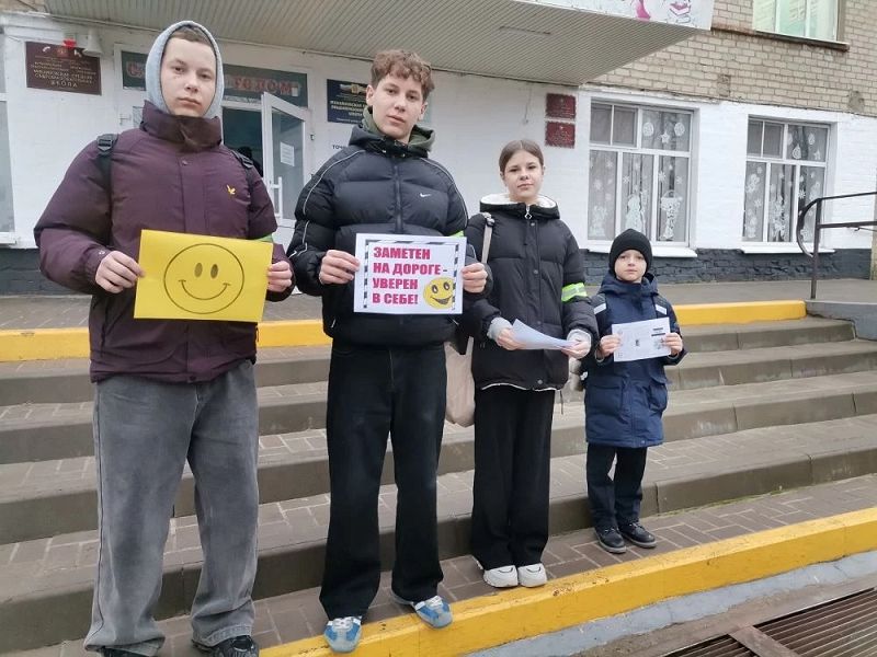 Ученики 9"Б" класса вручили младшим друзьям памятки "Засветись! Стань заметнее".