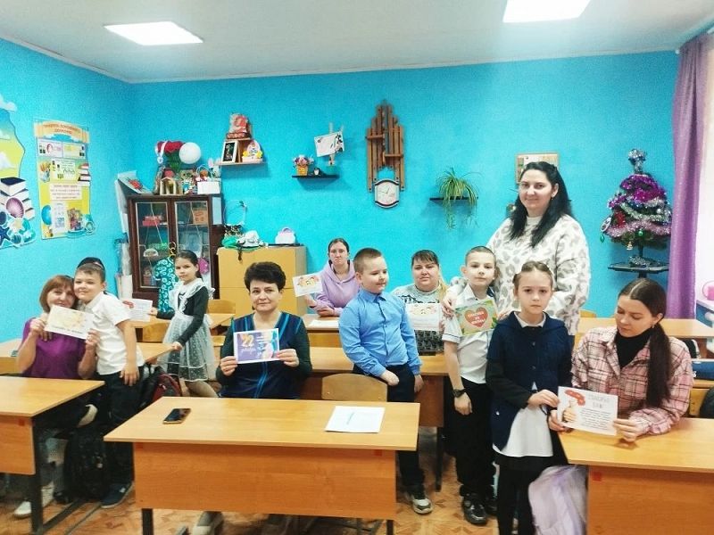 Учащиеся школы вручили родителям поздравительные открытки.