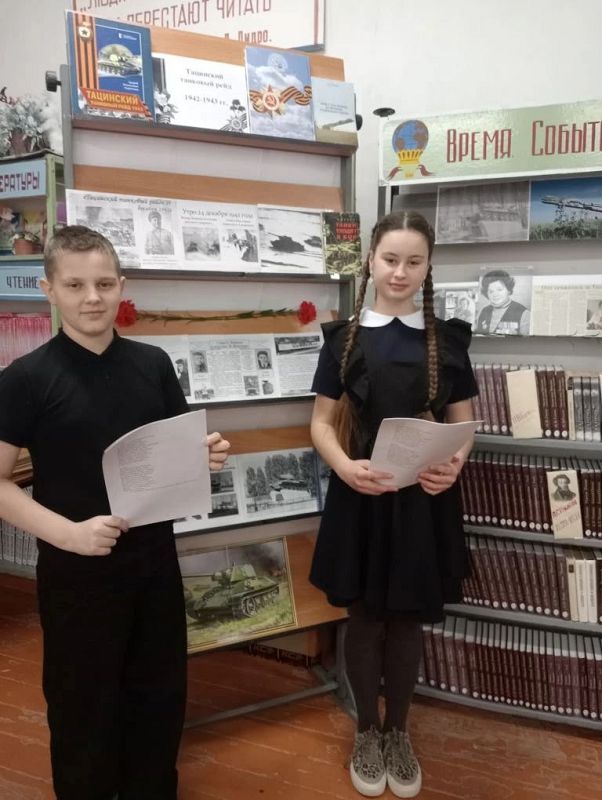 В библиотеке МБОУ Михайловской СОШ с учащимися 5 класса прошёл урок мужества "Подвигу жить в веках", посвященный Тацинскому танковому рейду.