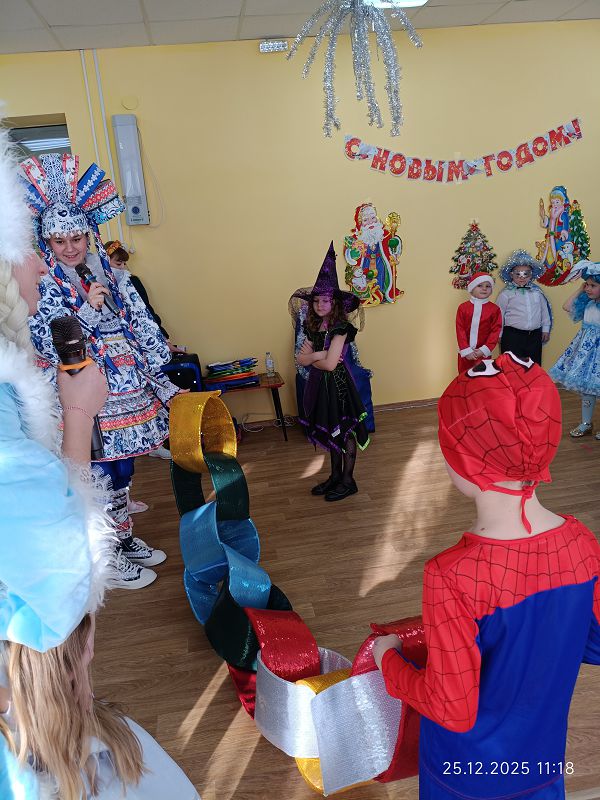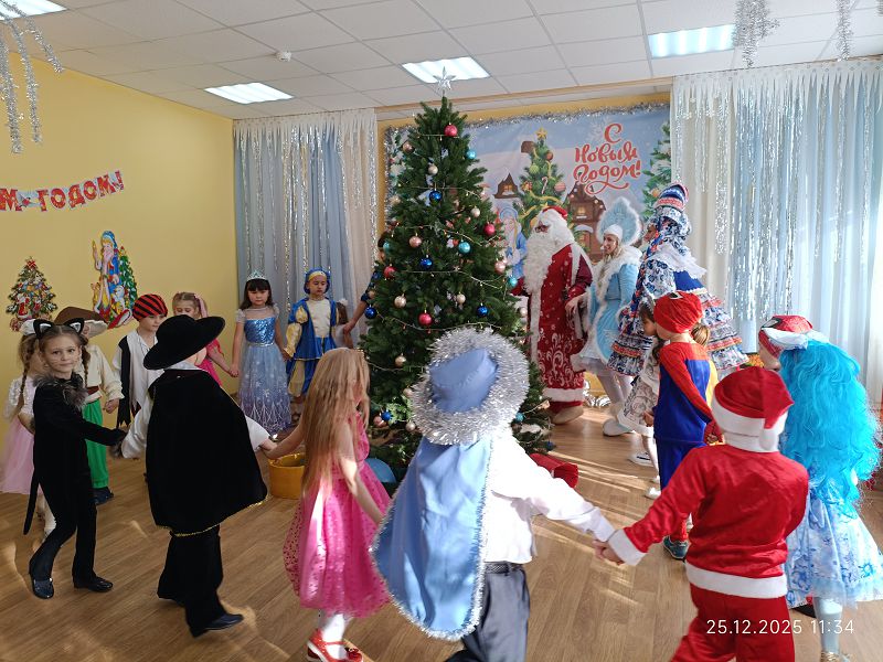 С самого начала праздника персонажи увлекали детей в волшебный мир новогодней сказки. Дети окунулись в праздничную атмосферу приключений, поучаствовали в интересных конкурсах. С появлением Деда Мороза начался настоящий праздник с танцами и хороводами вокруг ёлки.