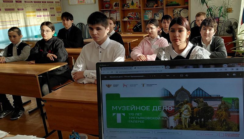 После линейки в школе прошли уроки "Разговоры о важном" на тему «Музейное дело. 170 лет Третьяковской галерее».