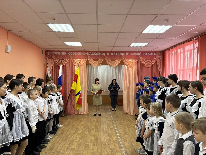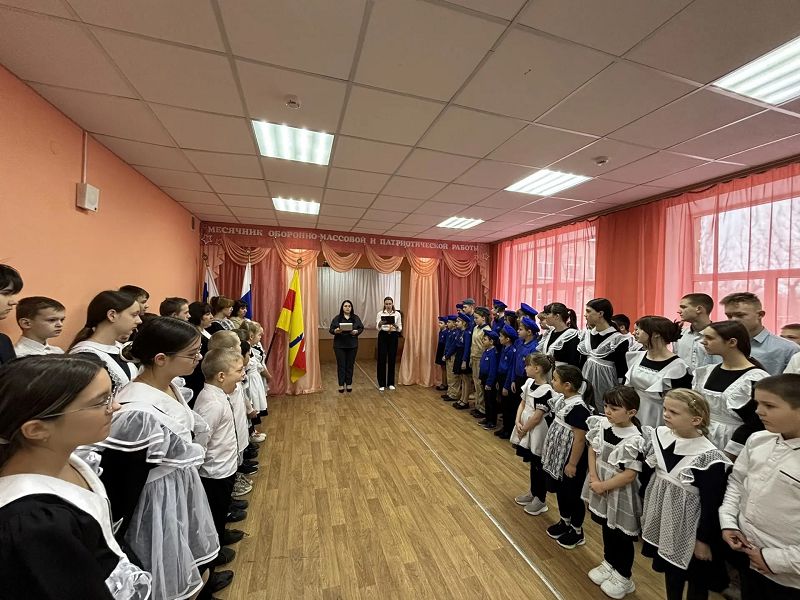 Сегодня в школе состоялась торжественная линейка, посвящённая открытию месячника оборонно-массовой и патриотической работы.