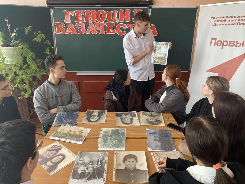 Обучающиеся узнали о том, что жертвами этого геноцида стали по самым скромным подсчетам более 3 миллионов представителей казачества - от новорожденных детей до седых старцев. Казаков пытались сделать народом без будущего, заставив забыть свою историю, предков, обычаи и песни.