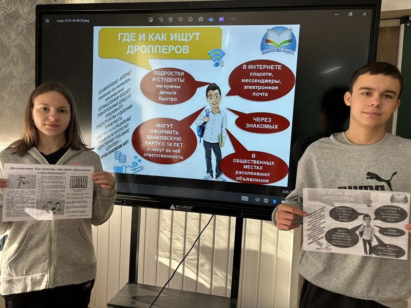 26 января 2026 года в 5 - 11 классах прошли беседы и классные часы на тему «Дроппер: как не стать соучастником преступления».