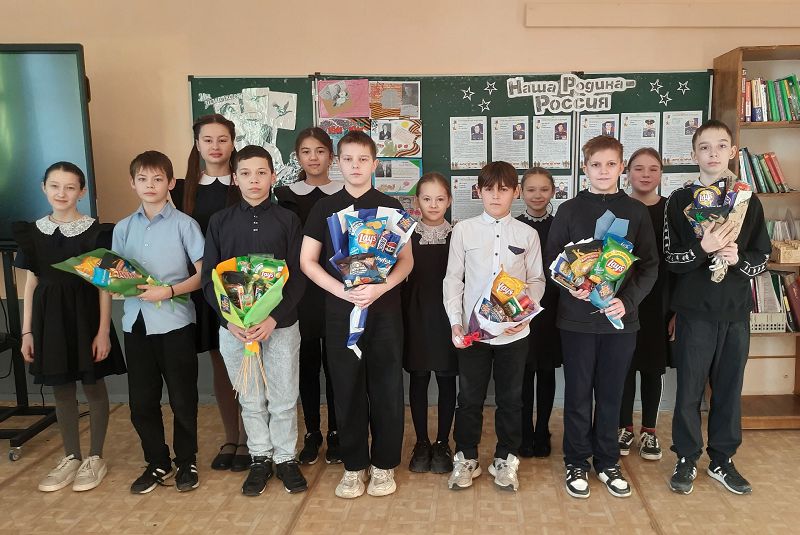 Всех мальчиков, будущих защитников, одноклассницы и учителя поздравили с наступающим праздником, вручили памятные подарки и сладости.
