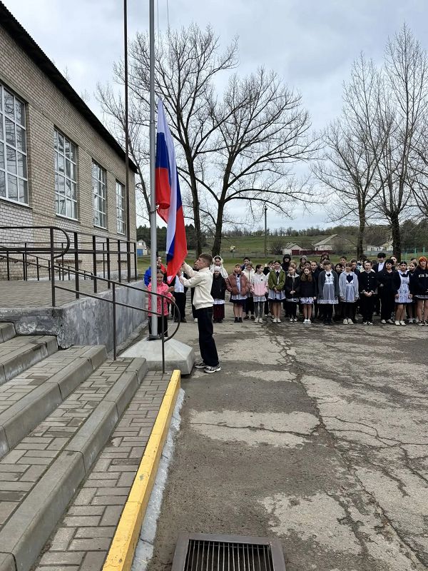 Утро понедельника, 20 апреля 2026 года, в нашей школе традиционно началось с торжественной линейки, церемонии поднятия флага и исполнения гимна Российской Федерации.