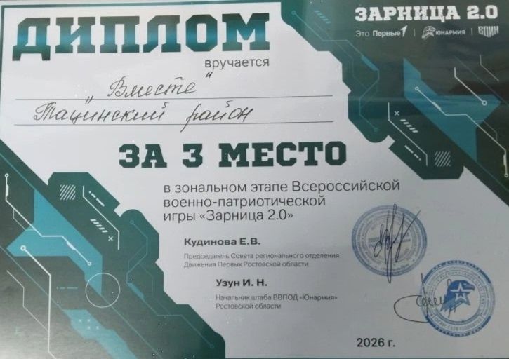21 апреля 2026 года 2 команды нашей школы средняя и старшая представили Тацинский район на зональных этапах «Зарницы 2.0»!