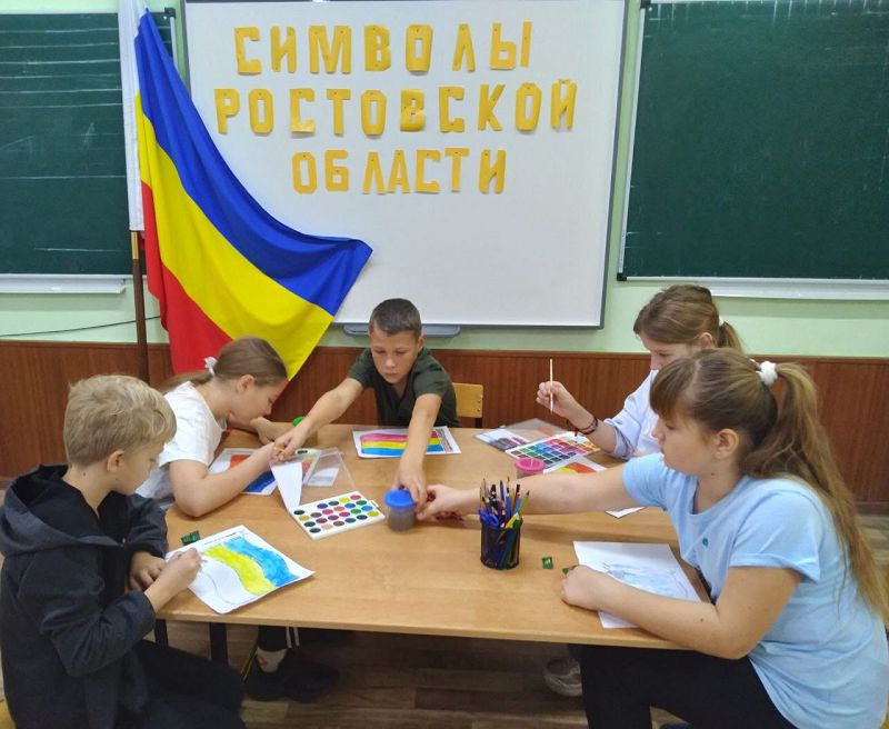 В честь Дня символов донского региона Польшинская В. У. с учащимися 4 класса провела творческую мастерскую «Создаем символы сами» по созданию миниатюрных копий герба и флага Ростовской области.