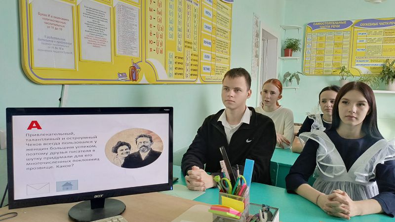 Сегодня в честь праздника учитель русского языка и литературы Шишкалова И. И. провела интеллектуальную игру-викторину "Рассказы великого мастера" с обучающимися 9 "А" класса. Ирина Игоревна познакомила учащихся с биографией писателя и интересными фактами из его жизни. Затем ребята перешли к викторине, вопросы которой охватывали основные этапы жизненного пути А. П. Чехова и особенности его творческой манеры.
